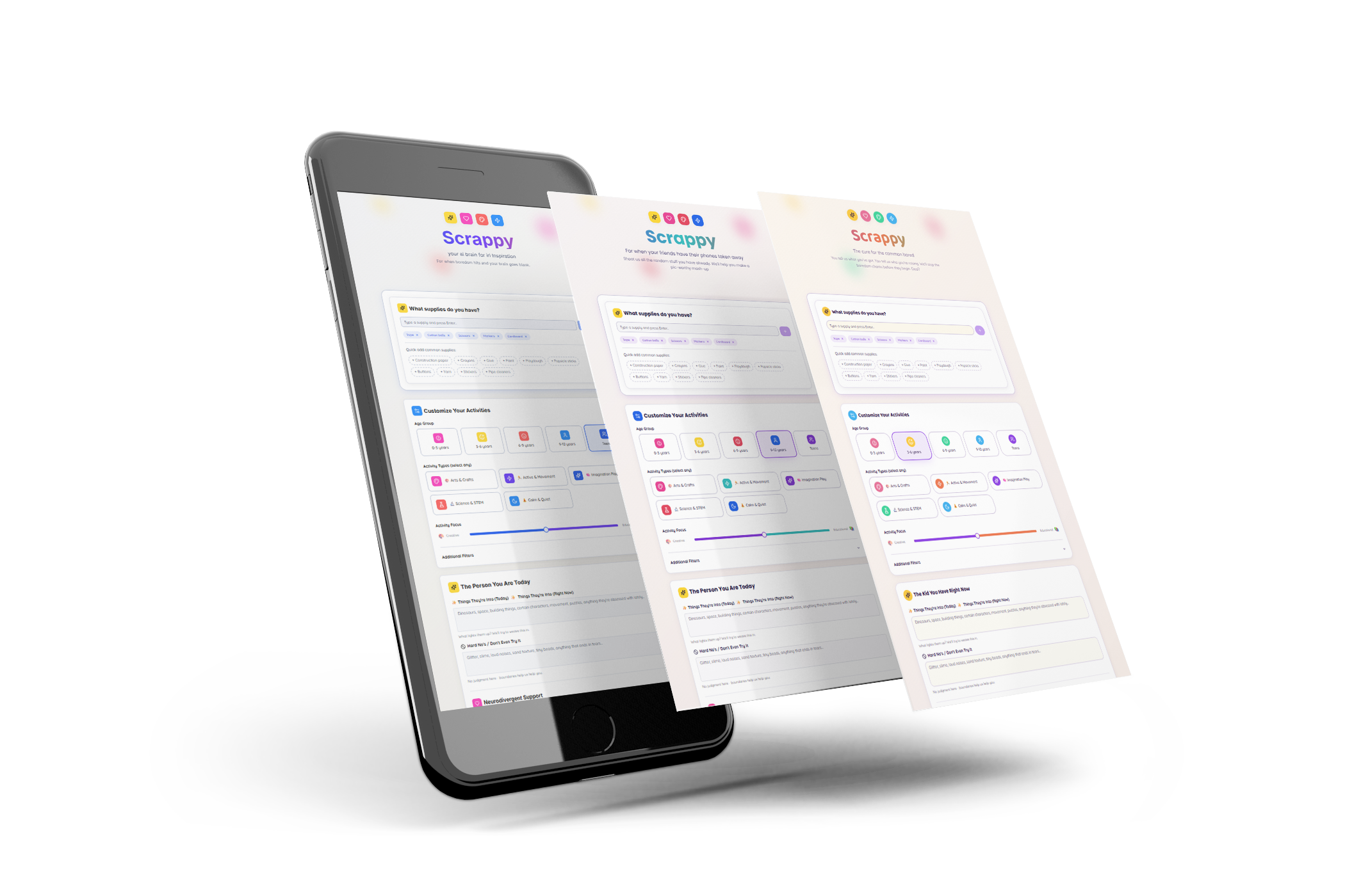 Scrappy suggests activities based on what’s in your actual home - no craft-store guilt trips.